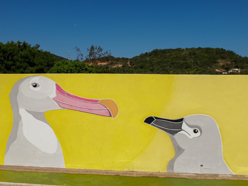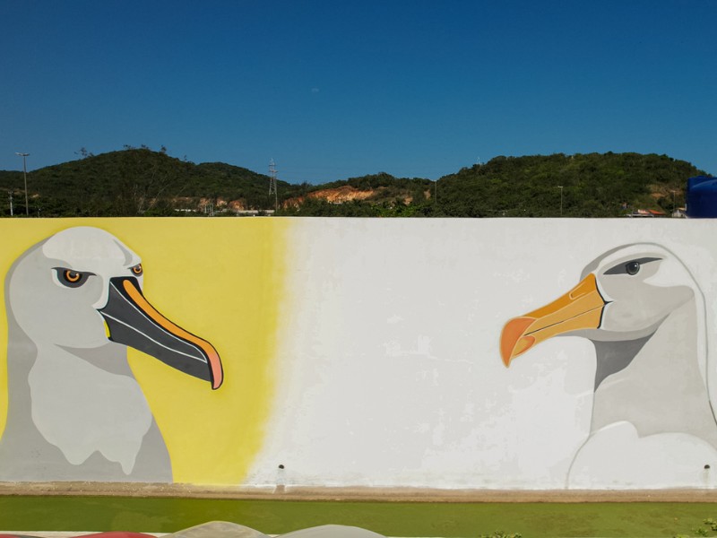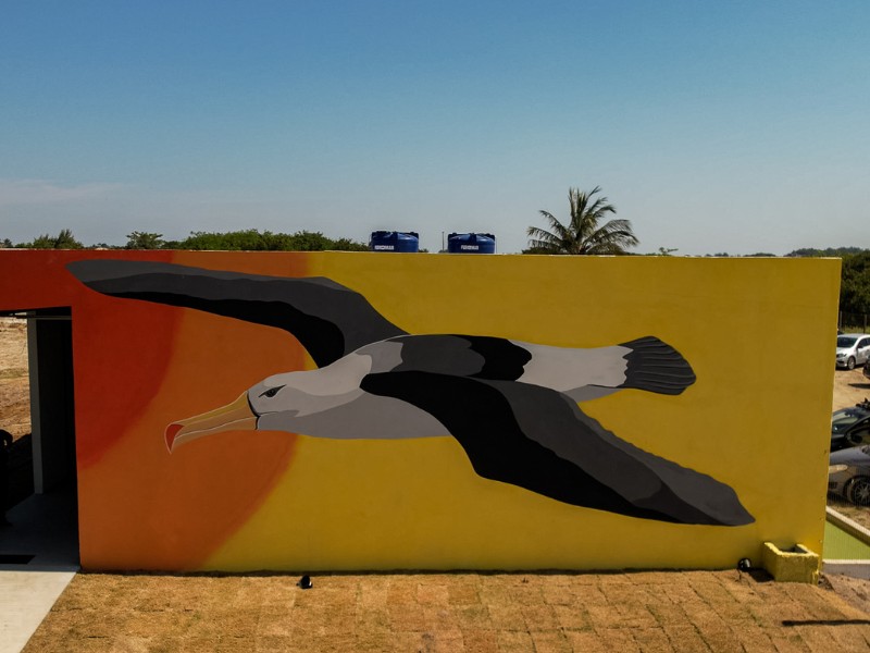 A conclusão do 100º painel significou a conclusão de uma missão pessoal de espalhar pelo litoral brasileiro, cem murais que retratassem a vida marinha para, como ferramenta de educação e cultura oceânica, passar às comunidades a importância da conservação do oceano. Comecei essa missão em 2009 com o Projeto Albatroz e não poderia terminar de forma diferente. Viajei pelo litoral de quase todo o país, de Rio Grande (RS) até Macapá (AM), então posso dizer que foi algo incrível e já estou pronto para as próximas. A inspiração para os murais do Centro de Visitação foi mostrar essa ave maravilhosa, com suas mais diferentes espécies, para o grande público. Acredito que hoje esse seja o maior painel de albatrozes do mundo. Nós conseguimos colocar a riqueza exuberante dessas aves nas paredes do centro e espalhar essa imagem pelo mundo para que todos conheçam essa maravilha que é o Centro de Visitação do Projeto Albatroz.