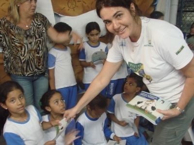 Nesta semana, o Programa de Educação Ambiental Marinha \\\"Albatroz na Escola\\\" realizou palestra e brincadeiras sobre a conservação marinha para 554 alunos da escola Maria de Lourdes Borges Bernal, na Zona Noroeste, em Santos-SP. No total, 1.547 alunos já participaram do “Espaço Albatroz”.