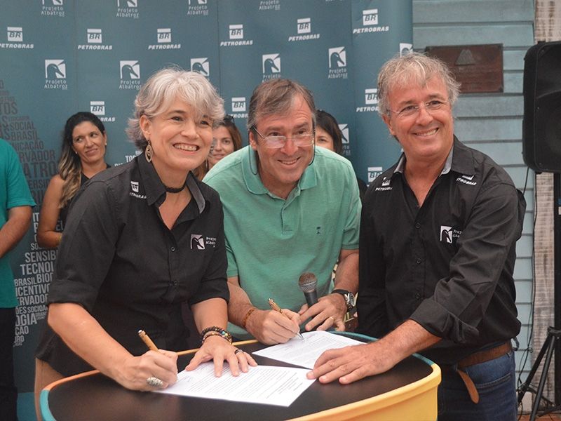Em clima de festa, com apresentações musicais e malabaristas, foi assinado um termo de intenção para a cessão de área para a construção do futuro Centro de Visitação Pública e Educação Ambiental Marinha do Projeto Albatroz, patrocinado pela Petrobras. A solenidade aconteceu no último domingo (25), no Terminal de Transatlântico de Cabo Frio, onde está instalada a exposição de fotos do projeto, e contou com diversas autoridades locais.