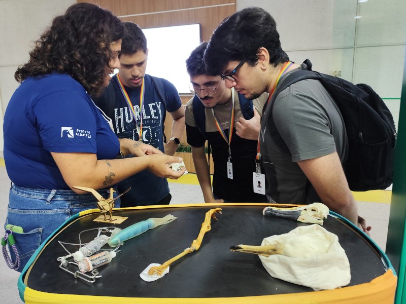 Com materiais informativos e também ossadas, aves taxidermizadas e petrechos utilizados na pesca industrial, os educadores atraíram o público e estimularam a curiosidade sobre esse grupo de aves, considerado o mais ameaçado do planeta. Além disso, mostraram o trabalho do Projeto Albatroz na prática, compartilhando informações sobre pesquisas, políticas públicas e educação ambiental como força motriz da conservação.