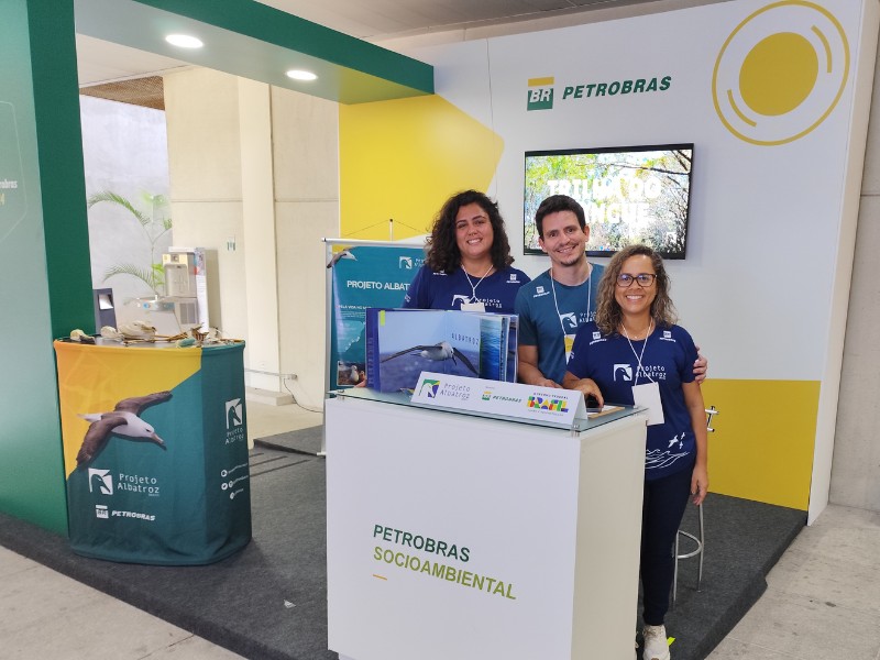 Durante o evento, a equipe de educação ambiental da instituição marcou presença no estande Petrobras Socioambiental, atendendo o público, explicando a problemática das ameaças impostas aos albatrozes e petréis no oceano, desde a captura incidental pela pesca industrial até a ingestão de resíduos plásticos e lixo descartado no mar.