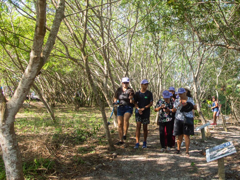 O próximo destino é a Trilha do Mangue, onde é possível conhecer e se familiarizar com o manguezal e a fauna e flora característica desse ecossistema em um espaço pensado em parceria com o Projeto Uçá, instituição especialista no assunto também patrocinada pela Petrobras. De lá, tem início uma trilha autoguiada rodeada por ar livre, com mangues, aroeiras, diversas espécies de caranguejos e aves para observação. Placas ajudam o público a identificar plantas e animais que vivem no local.