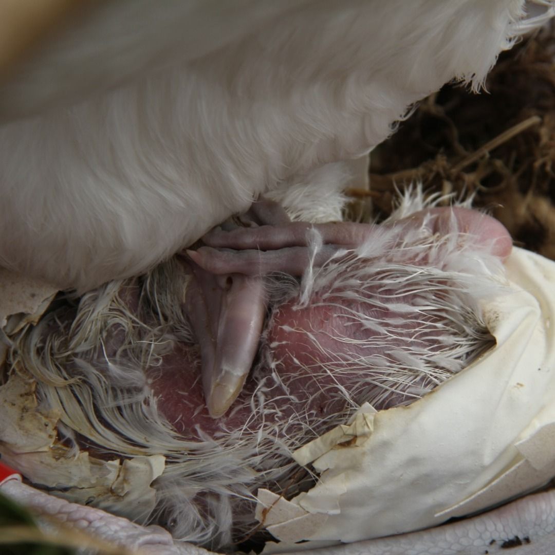6 - Um filhote de albatroz pode levar até cinco dias para sair completamente do ovo: após a eclosão, a saída do filhote não é imediata. Recém-chegado ao mundo, ele precisa aprender a manejar o seu próprio bico com destreza para quebrar a casca ao seu redor a partir de um único buraco por onde entra a luz.