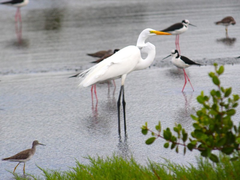 Entre as muitas espécies que podem ser encontradas estão o maçarico-de-bico-virado (Limosa haemastica) e o maçarico-de-bico-torto (Numenius hudsonicus), migratórios, que nidificam na região do Alasca e são avistados com muita frequência durante as trilhas em torno da lagoa, sendo identificados por seu longo e fino bico.
