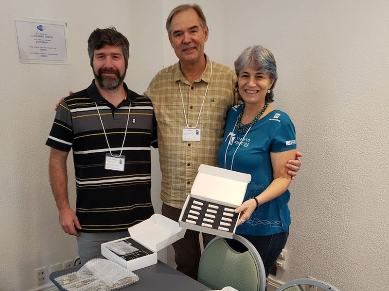 Graham Robertson, do Australian Antarctic Division, e Edward Melvin, do Washington Sea Grant (EUA), entregaram os materiais diretamente à coordenadora geral do Projeto Albatroz, Tatiana Neves e ao Juan Pablo Seco Pon, do Instituto de Investigaciones Marinas Marinas y Costeras da Universidad de Mar del Plata (Argentina), no Il Campanario Villagio Resort, onde acontece o encontro internacional.