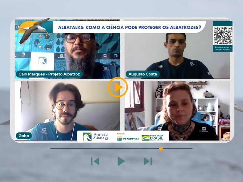 Capitaneada pelo gerente de pesquisa científica da instituição, Caio Marques, a Albatalks também contou com a participação dos seguintes convidados: Augusto Silva Costa, consultor técnico da base de Itajaí (SC); Alice Pereira, consultora responsável pelo Banco Nacional de Amostras de Albatroz e Petréis (BAAP); e o consultor técnico da base de Rio Grande (RS), Gabriel Canani Sampaio.