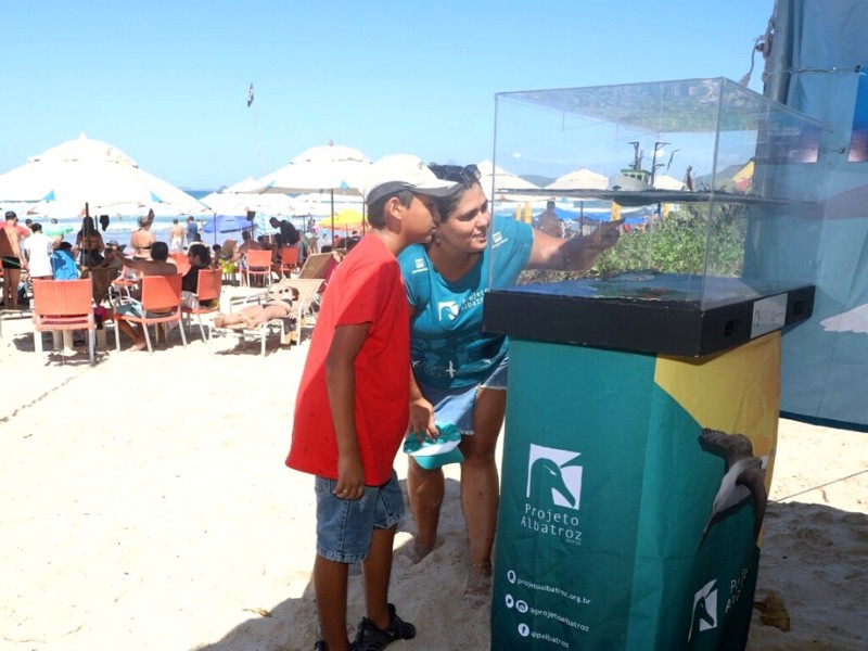 Ciente do impacto do lixo plástico para a degradação do oceano e sua biodiversidade, a Prefeitura de Búzios (RJ), na Região dos Lagos, convidou o Projeto Albatroz, patrocinado pela Petrobras, a participar de sua campanha de sensibilização ‘Praia sem lixo é luxo’, organizada pela Secretaria do Ambiente, Pesca e Urbanismo da cidade. A instituição montou um estande de educação ambiental no dia 23 de abril na Praia de Geribá, uma das mais movimentadas da região.
