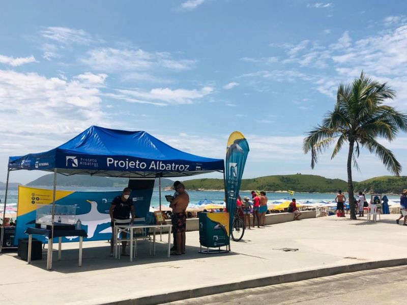 Em Cabo Frio (RJ), quiosque e tenda levam informações sobre albatrozes e petréis durante o Verão