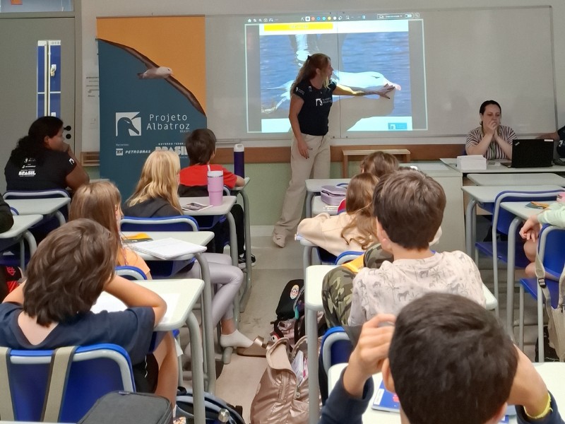 Segundo ela, a troca com os alunos foi muito especial porque ficaram sensibilizados sobre como todos podem impactar nas ameaças e também na proteção de espécies tão sensíveis às mudanças climáticas como os albatrozes e petréis. "Quando estimulamos as crianças a amar e proteger os oceanos, inspiramos pequenos guardiões da natureza, que verão em cada onda um motivo para trabalhar por um futuro oceânico cheio de beleza, biodiversidade e esperança", afirmou. "Acredito que todas as crianças têm o poder de amplificar essa mensagem e sensibilizar seus amigos e família, fortalecendo essa rede de conservação".