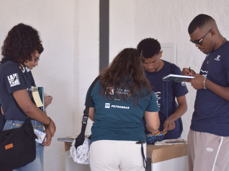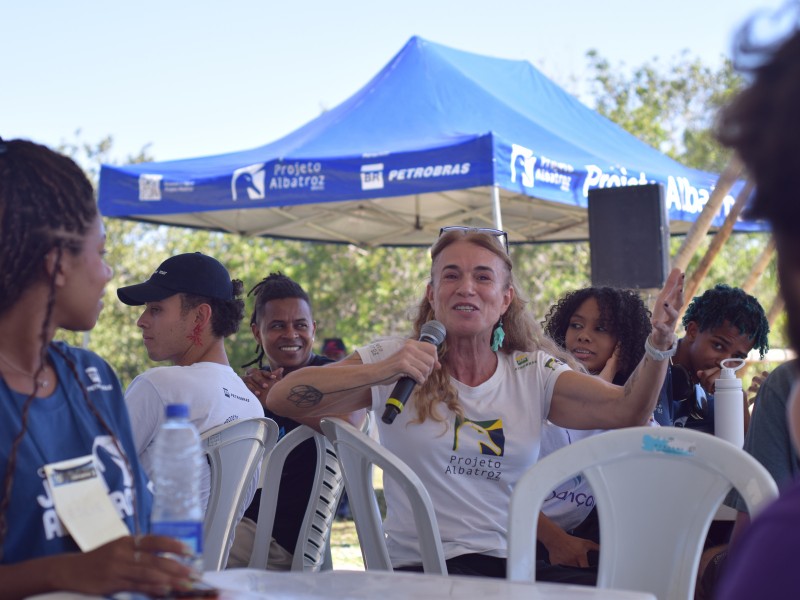 A programação começou com uma mesa-redonda que reuniu Tatiana Neves, fundadora do Projeto Albatroz; Ana Paula Marques, gestora da Petrobras; Yasmin Saracho, integrante da primeira turma do CJA; e Kailany Lima, uma das primeiras monitoras do Centro de Visitação e integrante do CJA. A proposta da mesa foi refletir sobre o passado, o presente e o futuro do CJA, destacando a importância da força jovem em pautas socioambientais.