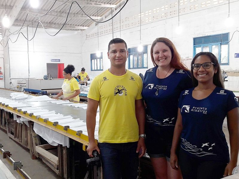 Responsável pela produção de materiais institucionais e promocionais do Projeto Albatroz, Tatianne Fonseca, destacou o profissionalismo em toda a linha de produção do Tamar. “Todos os funcionários são muito capacitados e a fábrica é muito envolvida com a comunidade”, afirma. “Eles empregam cada vez mais tecnologia na fabricação dos produtos mas, em compensação, as máquinas não substituem a mão de obra local”.