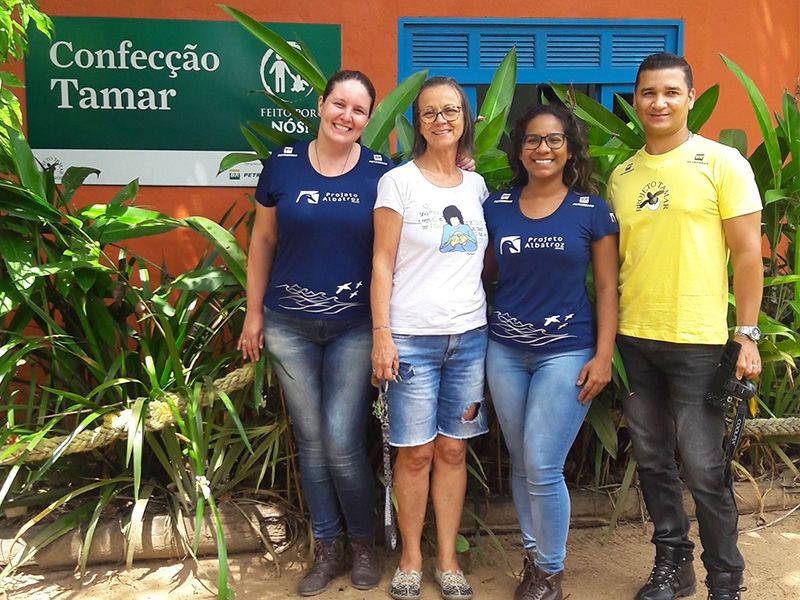 Tuta Burnet, Supervisora das confecções do Tamar e Hélio Alcântara, Assessor de Produção, com Jéssica Branco e Tatianne Fonseca do Projeto Albatroz.