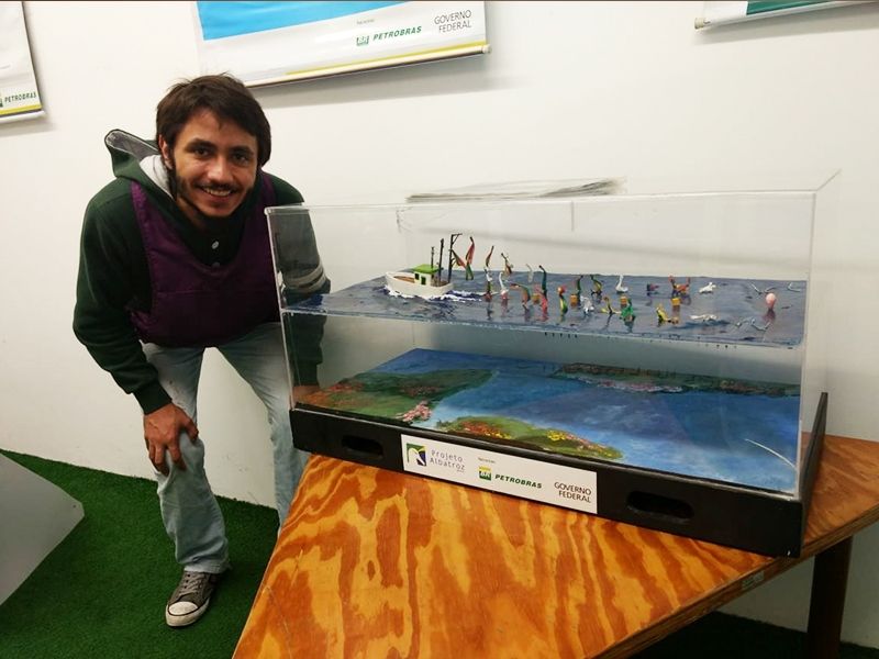 Uma maquete de barco de pesca também ajudará os monitores a mostrarem para os visitantes a realidade da pesca e o que pode ser feito para evitar a captura de albatrozes e petréis em águas brasileiras. Para a coordenadora de educação ambiental do Projeto Albatroz, Cynthia Ranieri, levar conhecimento sobre as aves marinhas para uma ação em conjunto com o Instituto Argonauta é importante para reforçar a importância da conservação das espécies e provocar reflexões sobre o lixo marinho.