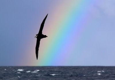 As imagens foram registradas por Dimas quando ele estava a bordo do “Rainbow”, nome do barco que dá título à foto que ficou em primeiro lugar na categoria “At sea” e mostra o petrel Pardela-de-óculos (Procellaria aequinoctialis) voando com um evidente Arco-íris ao fundo. “Alway from the hooks” (longe dos anzóis) é a imagem que conquistou o terceiro lugar na categoria “Conservation Message” e mostra o toriline, medida mitigadora desenvolvida pelo Projeto para afugentar as aves marinhas e, assim, evitar que elas tentem comer as iscas dos anzóis e serem fisgadas por eles.