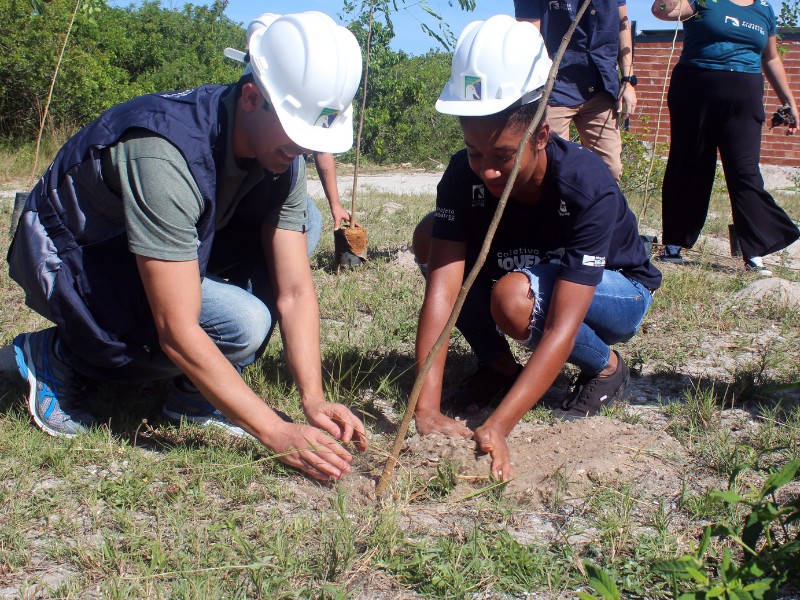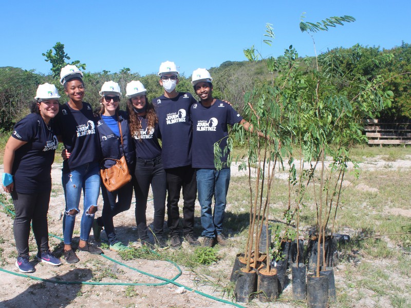 Para envolver a equipe da patrocinadora nas atividades do Centro Albatroz, foi realizado o plantio de mudas de aroeira, árvore característica da região. O Coletivo Jovem Albatroz participou da atividade.