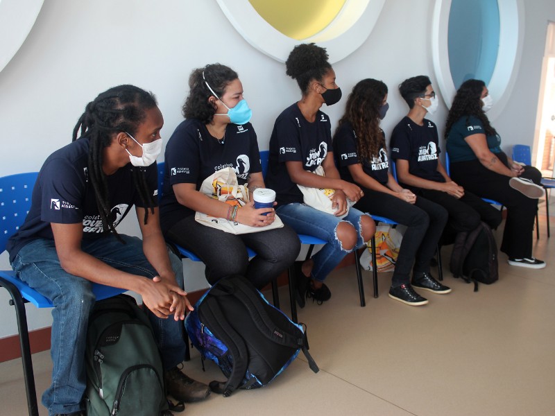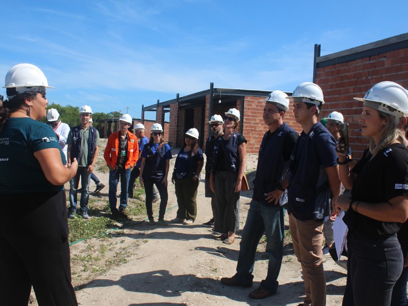 A visita foi marcada pelas saídas de campo com a equipe da Petrobras para conhecer dois locais: o terreno de obras do Centro Albatroz e uma atividade especial do Programa Albatroz na Escola na E. M. Evaldo Salles.