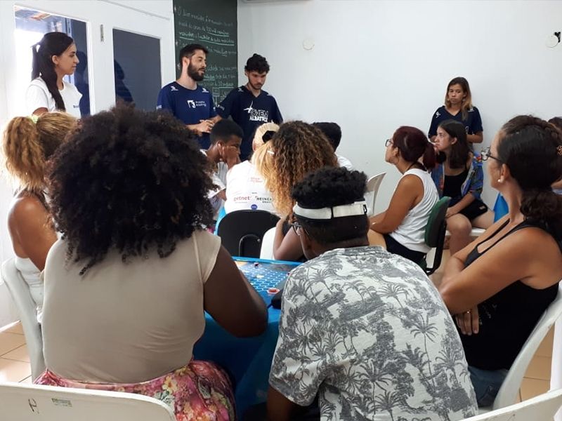 Quatro integrantes do Coletivo Jovem Albatroz, iniciativa de formação de lideranças juvenis socioambientais do Projeto Albatroz, ajudaram e facilitaram a atividade, participando do jogo junto dos visitantes do Gremar. Jéssica Paixão, Rodolfo Meireles, Rodrigo Santana e Arianne Fonseca puderam, também, conhecer as instalações do Instituto Gremar, que faz o trabalho de resgate e recuperação de animais marinhos na Baixada Santista.