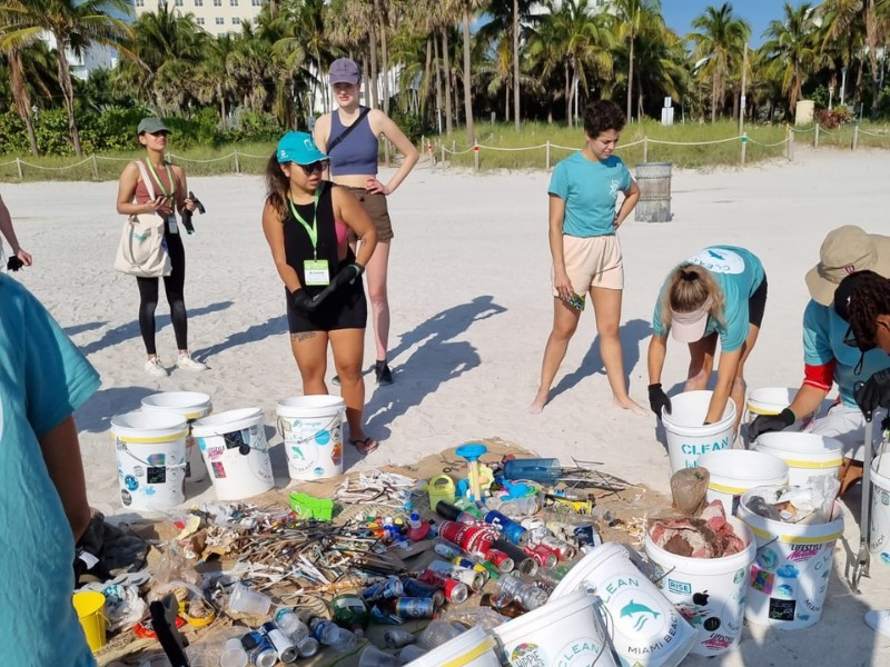 Na areia da praia de Miami Beach, os jovens participantes se engajaram em uma ação clean-up em parceria com o projeto Clean Miami Beach. Em apenas uma hora de coleta em grupo, foram recolhidos mais de 46 kg de resíduos, constituído principalmente de fragmentos plásticos, garrafas, canudos, bitucas de cigarro e outros itens facilmente encontrados nas praias brasileiras, chamando atenção para essa problemática global.