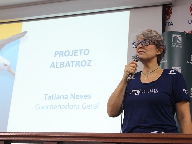 Na primeira delas, intitulada "Conservação Marinha em Pauta”, a coordenadora geral do Projeto Albatroz, Tatiana Neves, se juntou à assessora de comunicação do Projeto Tamar, Bia Ribas, e o jornalista e editor-executivo do portal Envolverde, Dal Marcondes, para uma conversa sobre o relacionamento entre jornalistas e cientistas. A palestra de Tatiana sobre a biologia dos albatrozes comoveu o público com os desafios de sua conservação, as ameaças pela pesca e a beleza de sua reprodução.