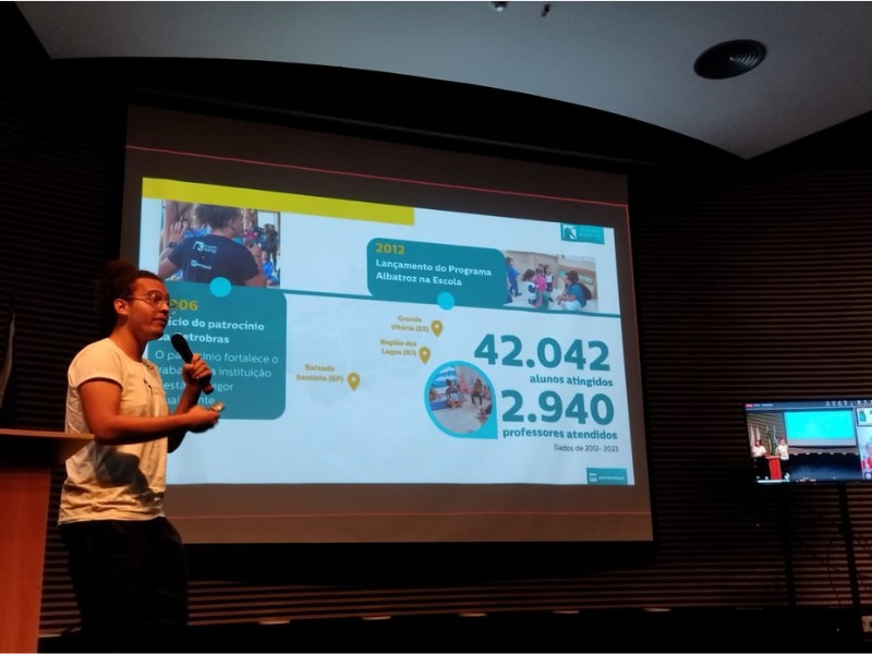 No âmbito da educação ambiental, Thaís Lopes e Yago Ferreira deram destaque à criação do Programa Albatroz na Escola (PAE), que leva desde 2012 atividades que aproximam as crianças da conservação marinha e da cultura oceânica em diversos estados do Brasil. Em parceria com secretarias de educação e professores, é realizada uma capacitação que culmina na introdução dessa temática no currículo escolar. De 2012 a 2023, mais de 42 mil alunos foram envolvidos no PAE e cerca de 3 mil professores.