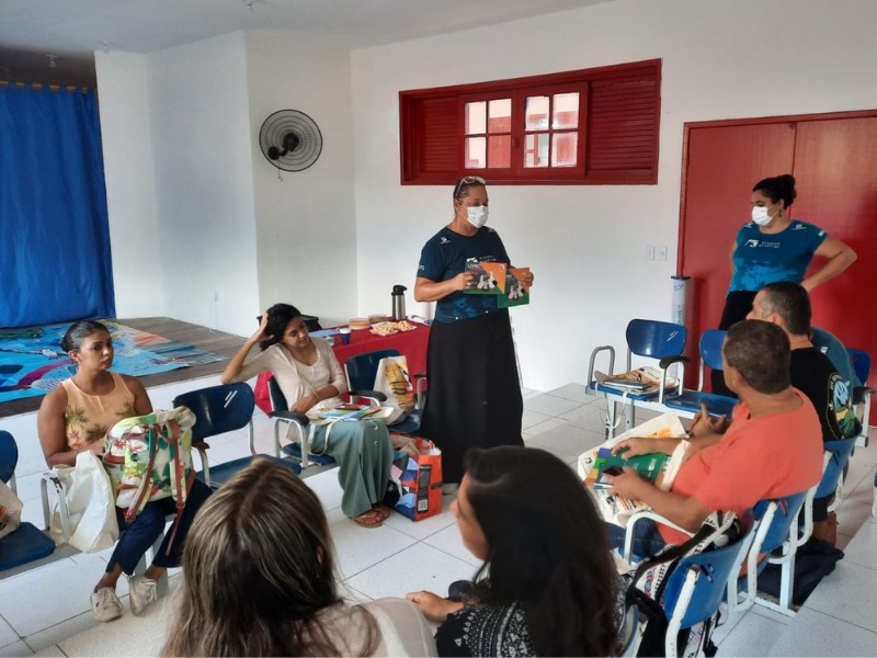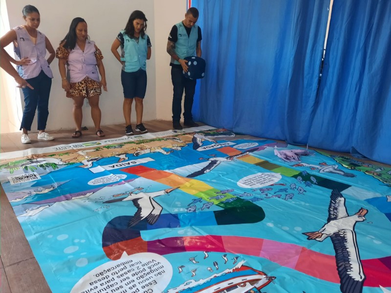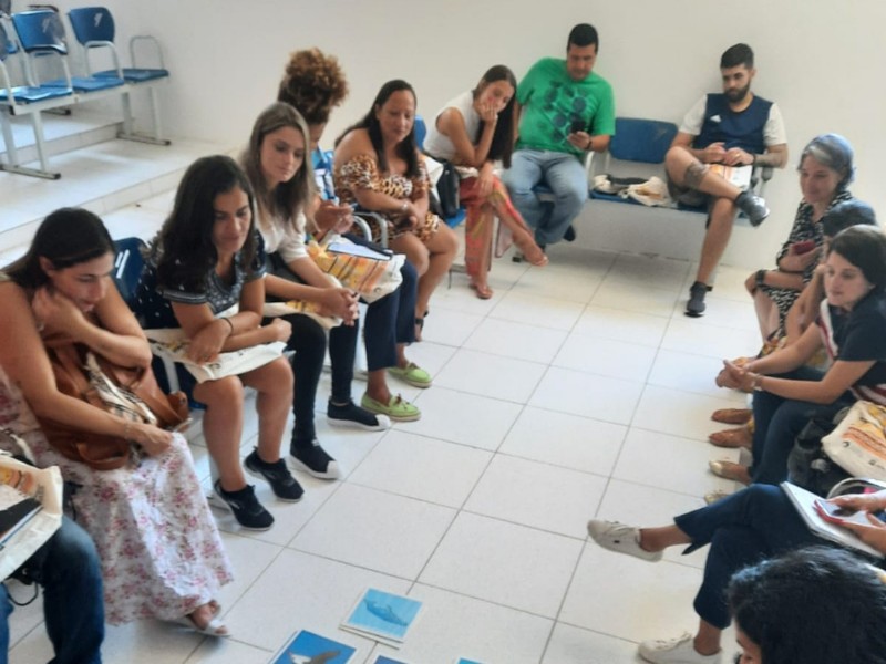 O primeiro encontro com o grupo de educadores de Arraial do Cabo (RJ) teve o objetivo de apresentar a iniciativa da Maleta Albatroz, dando a eles a chance de experimentar os materiais sob a orientação da equipe de educação ambiental, discutir dúvidas e sugestões, além de refletirem sobre como é possível criar novas formas de aplicar atividades sobre o tema com os estudantes.