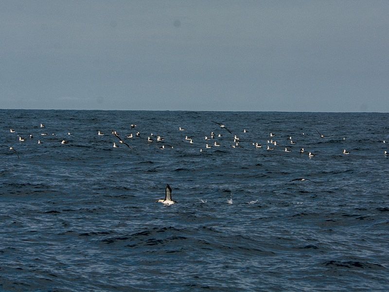 As aves sobrevoavam um barco de pesca de arrasto em busca de alimento, entre os peixes descartados pela embarcação. De acordo com o guia da expedição, foram contados cerca de 300 albatrozes-de-nariz-amarelo (Thalassarche chlororhynchos), 40 pardelas-de-sobre-branco (Ardenna gravis) e dois petréis-pequenos (Puffinus puffinus).