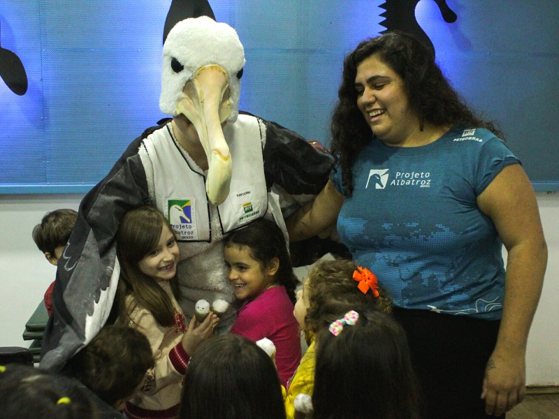 Até mesmo em ações do Programa Albatroz na Escola (PAE), desenvolvido há mais de dez anos em parceria com escolas para complementar o ensino formal com experiências voltadas à conservação de albatrozes e petréis, as atividades envolvem contação de histórias sobre o ambiente marinho, produções artísticas, fantasias de albatroz, jogos e outras dinâmicas que promovem o desenvolvimento infantil.