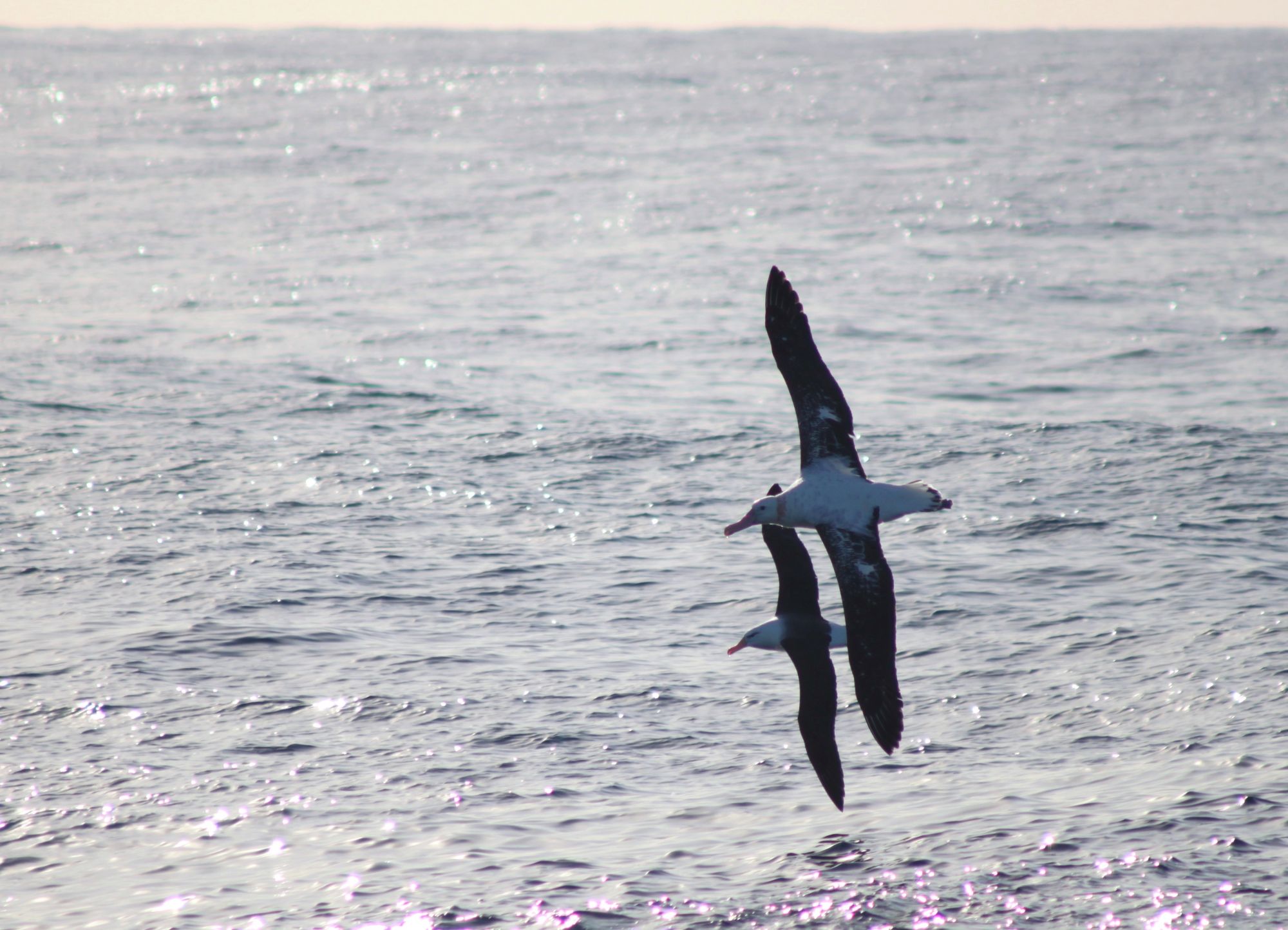 É verdade que para isso essas aves necessitam de adaptações especiais, como bicos em forma de gancho, típico de gaivotas, albatrozes e petréis, ferramenta eficiente para capturar presas lisas e escorregadias na superfície do mar. Geralmente possuem plumagem espessa, que permite isolamento térmico, já que muitas passam parte de suas vidas em regiões polares e subpolares. Além disso, grandes patas palmadas, com membranas interdigitais bem desenvolvidas, permitem decolarem a partir da superfície do mar. Essas patas servem como o “motor propulsor” na hora da natação e são também utilizadas em manobras aéreas, se assemelhando aos flaps dos aviões. Ainda sobre o voo, não se pode deixar de falar da incrível envergadura das asas de algumas dessa aves. Adaptados a longas migrações que circundam o continente antártico, alguns albatrozes possuem asas estreitas e muito longas, alcançando espetaculares 3,5 metros da ponta de uma asa a outra. São asas típicas de aves planadoras que percorrem distâncias planetárias, utilizando os ventos constantes dos mares do Sul, para executar suas tarefas reprodutivas e para buscar o seu alimento. Mas talvez a adaptação mais notável seja a presença de um par de glândulas de sal ou supraorbitais, localizadas na parte superior do crânio, que têm a função de auxiliar o organismo a secretar o excesso de sal, uma vez que são aves que não possuem acesso à água doce, bebendo a água do mar ativamente ou ingerindo juntamente com seu alimento.