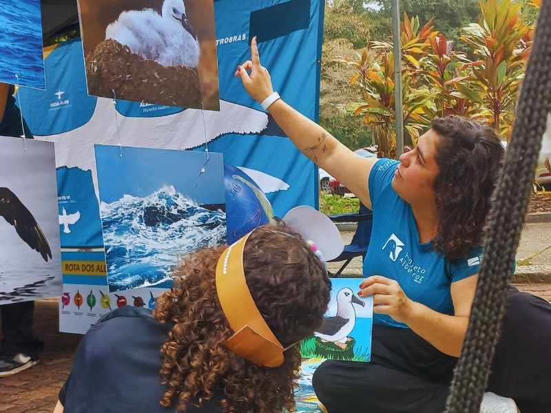 Durante o fim de semana do evento, a equipe de educação ambiental do Projeto Albatroz marcou presença com uma tenda repleta de atividades de educação ambiental para crianças, jovens e pessoas interessadas em aprender mais sobre essas aves. Tarefas simples como encontrar animais marinhos em um jogo da memória, desenhar e colorir albatrozes e comparar o tamanho dos braços abertos à envergadura do albatroz-viageiro (Diomedea exulans), o maior entre todas as espécies, permitiu sensibilizar esse público e plantar a semente da conservação do oceano e de sua biodiversidade.