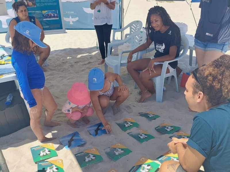 Já no dia 4 de fevereiro, a ação aconteceu na Praia da Vila, outro ponto bastante movimentado aos finais de semana. Por lá, os jovens do CJA e a equipe de educação ambiental propuseram atividades com as crianças, utilizando o Jogo da Memória do Albatroz e a História em Quadrinhos da Albatrupe, como uma forma de aproximar as características dos albatrozes e petréis, bem como as ameaças que enfrentam em alto-mar, do universo infantil, de forma lúdica e divertida.