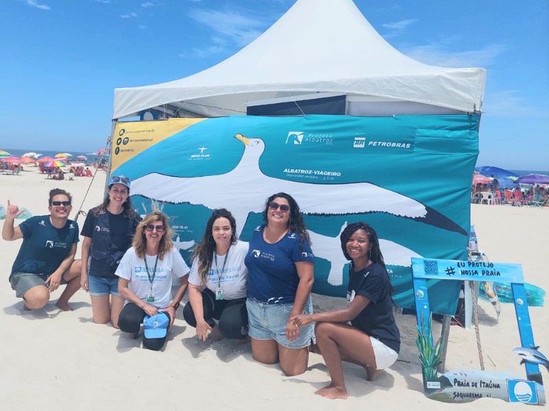 Certificada no últimos mês de novembro pelo Programa Bandeira Azul, que é uma certificação para praias sustentáveis, a praia de Itaúna, em Saquarema (RJ), recebeu o Projeto Albatroz, patrocinado pela Petrobras, para realizar duas ações de educação e sensibilização ambiental com banhistas durante a temporada de verão. As ações aconteceram em dois sábados, 28 de janeiro e 4 de fevereiro, dia da semana em que a praia recebe a maior quantidade de público.