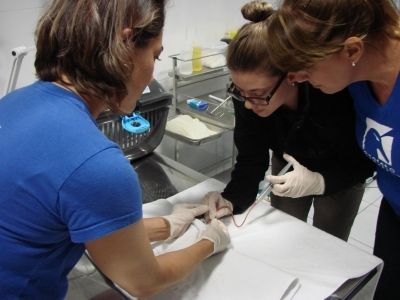“Assim que o bicho chega ao centro de reabilitação ele é hidratado e tentamos aumentar sua temperatura corporal. Depois, dia após dia, vamos alimentando esse animal com papinhas feita de peixes e depois passamos para uma alimentação sólida, sempre fazendo a hidratação. A outra etapa do tratamento é quando colocamos a ave na água para ela naturalmente fazer com que suas penas fiquem impermeáveis e, assim, poderem ser soltas na natureza com tranquilidade”, explica Juliana.