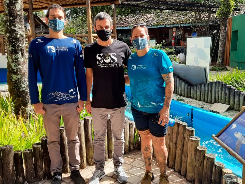 Da esquerda para direita, Gabriel Diniz Zamoner, Bruno Giffoni (Projeto Tamar) e Janaína Machado.