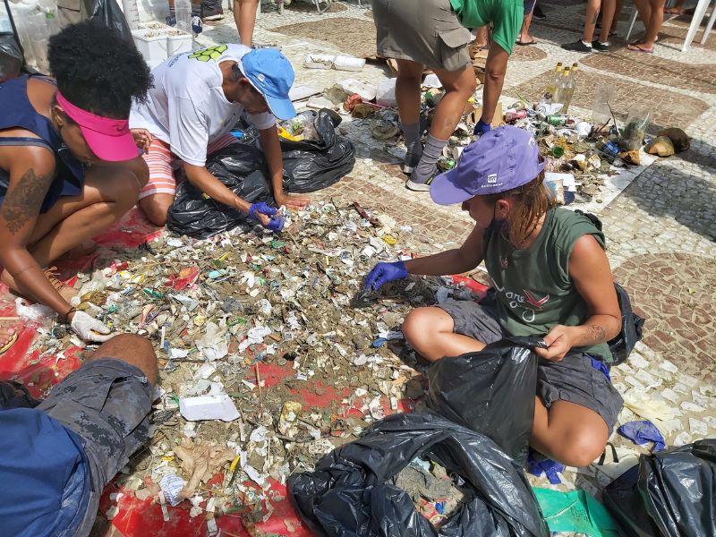 O ponto de encontro de dois grupos de voluntários foi simultaneamente nos Canais 2 e 3 e, em seguida, os participantes se deslocaram pela faixa de areia em direção à Praça das Bandeiras, coletando resíduos como garrafas plásticas, latas de alumínio, cacos de vidro, sacolas, canudos e bitucas de cigarro que iriam diretamente para o oceano ou esgotos da cidade.