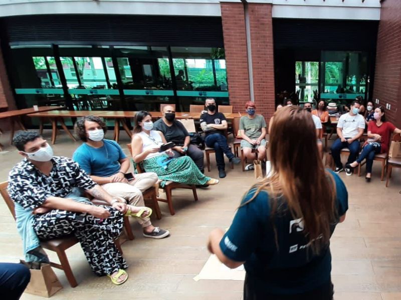 Em seguida, os influenciadores se dividiram em grupos para discutir o seu papel enquanto propagadores de informações e como elas podem ser relevantes para a construção de um oceano mais saudável e um turismo mais consciente.