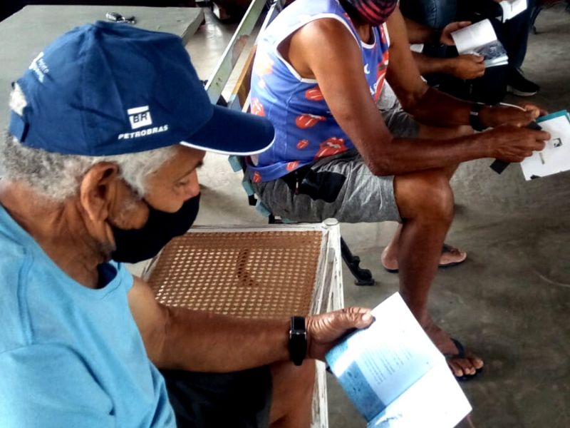Representando as famílias da pesca, Alcir Souza também deu relatos sobre as pescarias de pescada-amarela, bagre e a tradição da cultura da pesca das gerações da sua família. Dona Zileia de Oliveira, acompanhada de seu filho, participou da roda de conversa comentando seu orgulho de ser mulher da pesca, trabalhando com a coleta de mariscos na cidade.