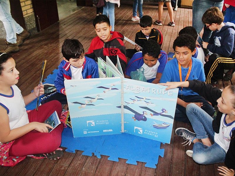 Para fechar a semana, em parceria com a Fundação Florestal- APAs Marinhas, a equipe de comunicação do Projeto Albatroz apresentou o albatroz e suas características para alunos da rede pública de São Vicente, do ensino fundamental I, com atividades interativas como o Jogo da Memória Marinha, a História em Quadrinhos Gigante “Espanta Albatroz” e sessão cinema com as divertidas animações Albatrupe. As atividades foram concluídas no último dia 9, no Parque Estadual Xixová Japuí.