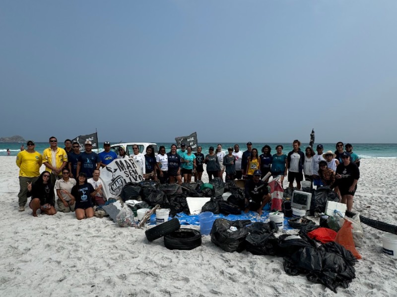 Na manhã do dia seguinte, a equipe de educação ambiental do Projeto Albatroz uniu esforços com uma série de instituições da Região dos Lagos para participar do mutirão de limpeza organizado pelo Projeto Mar Sem Lixo em uma área de mais de 12km de extensão entre Praia Grande e Monte Alto, em Arraial do Cabo (RJ), dentro do Parque Estadual Costa do Sol.