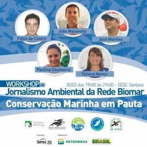 Com objetivo de fortalecer a formação de jornalistas comprometidos com as causas ambientais, foi realizado em São Paulo, no final do mês de março, o Workshop de Jornalismo Ambiental da Rede Biomar. O evento ocorreu no SESC Santana e trouxe o tema \\\"Conservação Marinha em Pauta”. Entre os convidados estavam dois representantes da Rede Biomar, composta por cinco projetos patrocinados pela Petrobras, por meio do Programa Petrobras Socioambiental: Albatroz, Baleia Jubarte, Coral Vivo, Golfinho Rotador e Tamar.