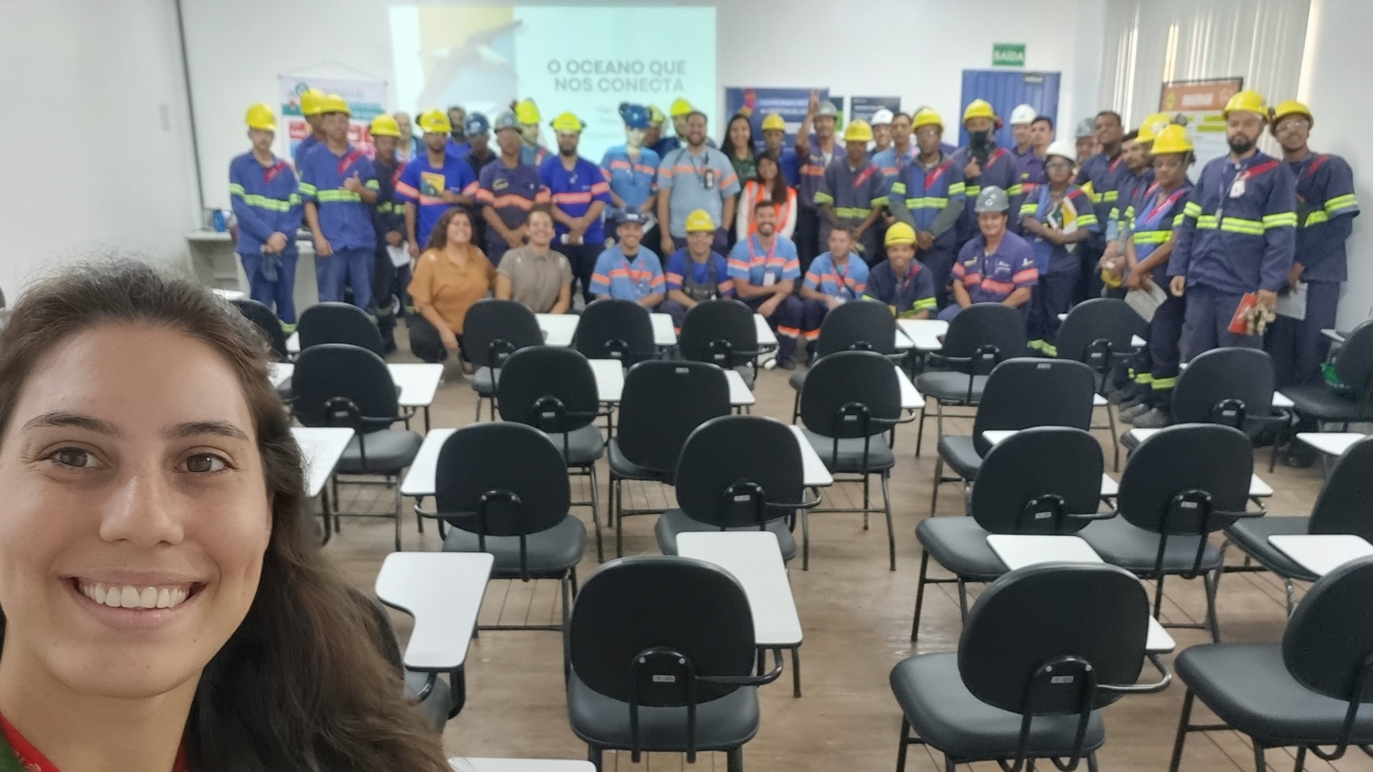 No dia seguinte, em Guarujá (7), a equipe facilitou o processo de aprendizagem na oficina “O oceano que nos conecta”, criada especialmente para os os colaboradores do Terminal Marítimo do Guarujá (TERMAG), que diariamente trabalham em contato com o ecossistema, seus desafios e conservação. Foram apresentados os Objetivos do Desenvolvimento Sustentável (ODS), criados pela ONU, para que façam parte da rotina do setor portuário.