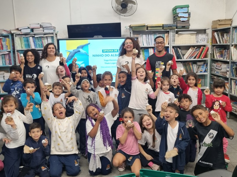 Para finalizar, nos dias 15 e 19, a equipe de educação ambiental uniu forças com o Instituto Arte no Dique para realizar duas oficinas em homenagem ao Dia Mundial do Albatroz em Santos (SP), que contou com a participação de mais de 60 alunos da rede municipal (saiba mais sobre a atividade aqui).
