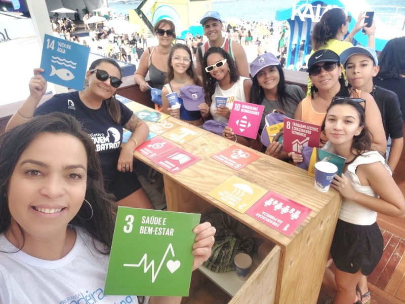 Já no dia 7, foi a vez de participar da Marcha pelo Oceano, atividade organizada pelo Instituto Mar Sem Lixo em Cabo Frio (RJ). A equipe de educação ambiental montou o Espaço Albatroz com uma série de atividades educativas sobre o oceano, a conservação marinha, as curiosidades sobre albatrozes e petréis e também as ODS, para que o público as conheça e as coloque em prática na sua vida cotidiana.