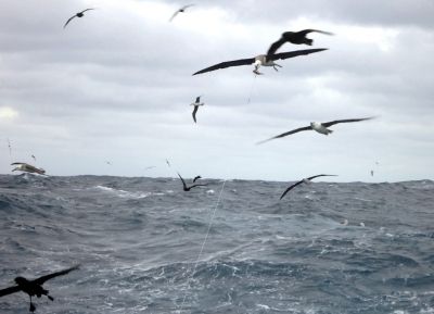Na última terça-feira (25), Fabiano Peppes, coordenador técnico do Projeto Albatroz, embarcou para continuar os testes do hook pod, dispositivo que busca impedir que albatrozes e petréis sejam fisgados pelo anzol da pesca na tentativa de comer as iscas. Ele e Dimas Gianuca, coordenador da base do Projeto em Rio Grande (RS), estão se revezando em embarques a bordo do \\\"Gera VIII\\\", barco comandado pelo mestre de pesca Celso Rocha de Oliveira.