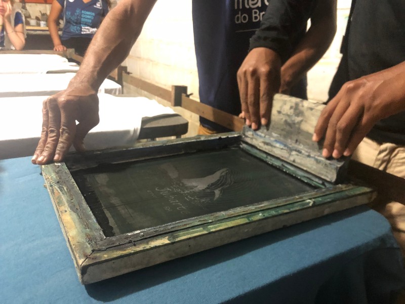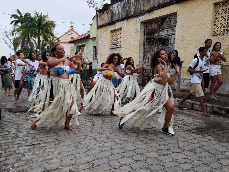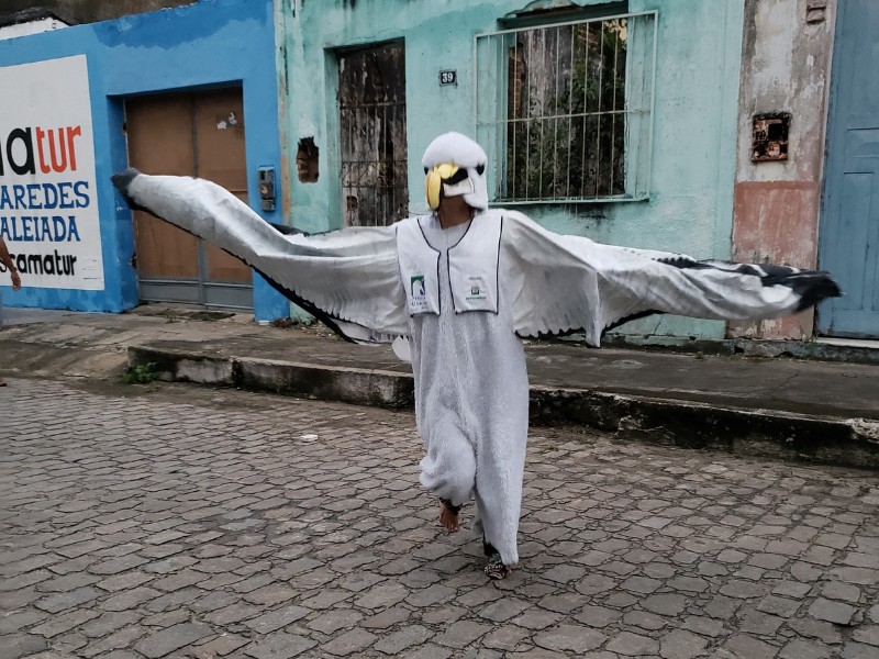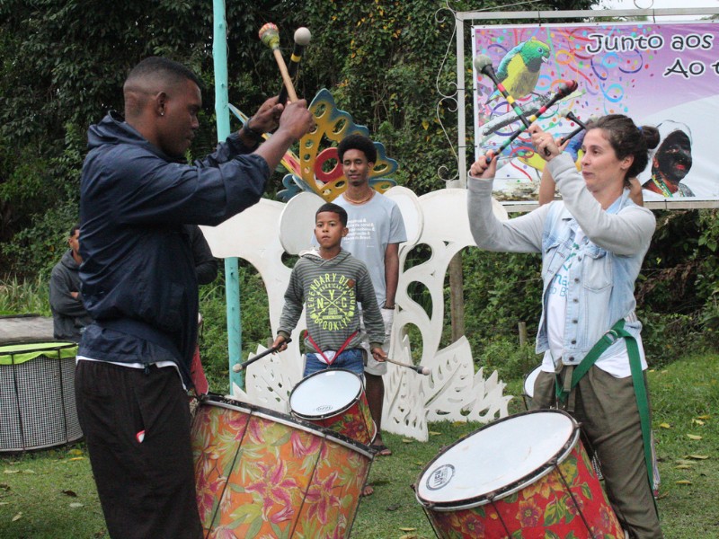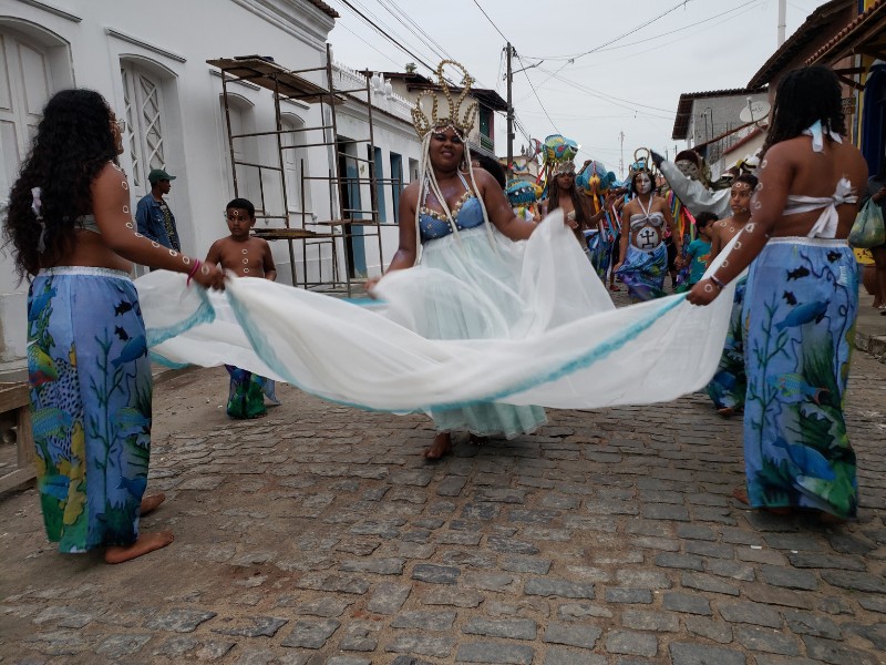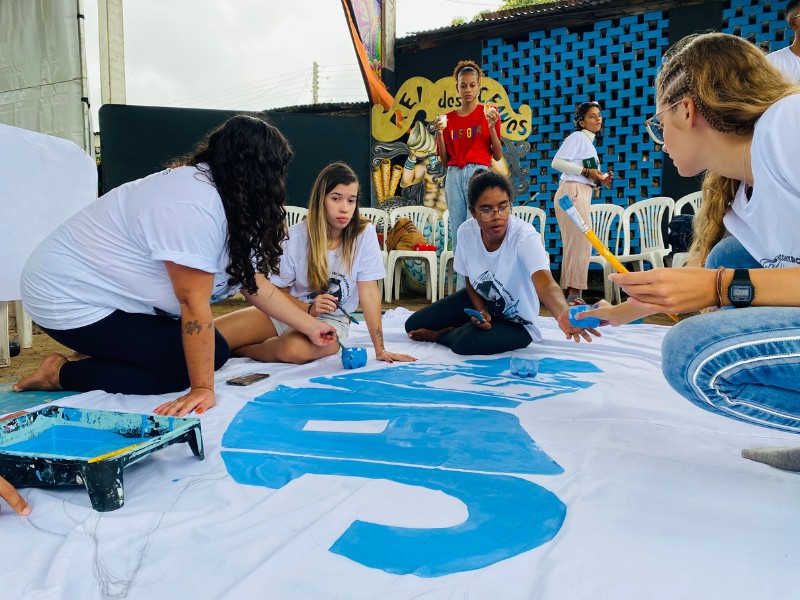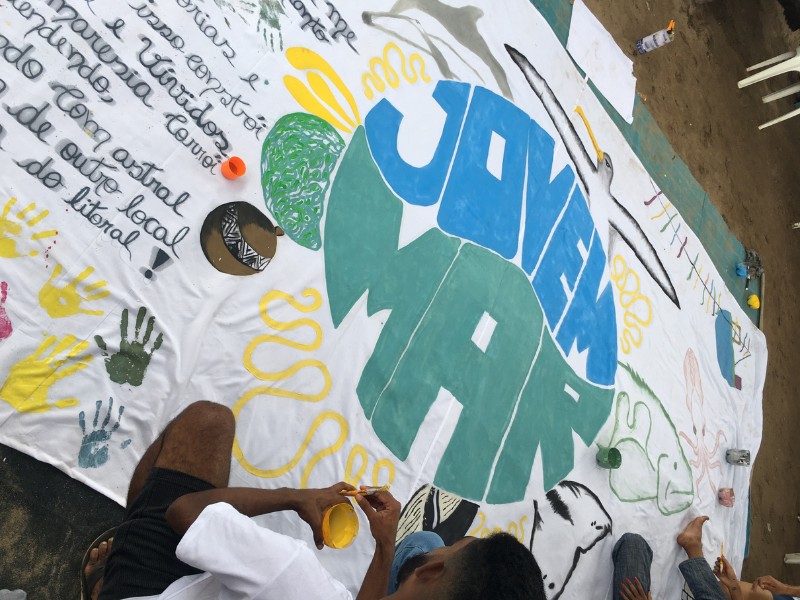 Essas linguagens artísticas foram importantes para as atividades do segundo dia do V Encontro Jovem Mar. Nele, os jovens criaram de forma coletiva uma bandeira que representa o manifesto dos anseios do Coletivo Jovem Mar, por meio da pintura, desenho e poesia. Ela foi utilizada como o estandarte do grupo no Cordão da Diversidade, que levou mais de uma centena de pessoas às ruas do centro de Caravelas, no embalo da percussão e das danças afro-indígenas. O desfile também apresentou as espécies-bandeira da Rede Biomar, e compartilhou com o público a mensagem de conservação dos cinco coletivos jovens.
