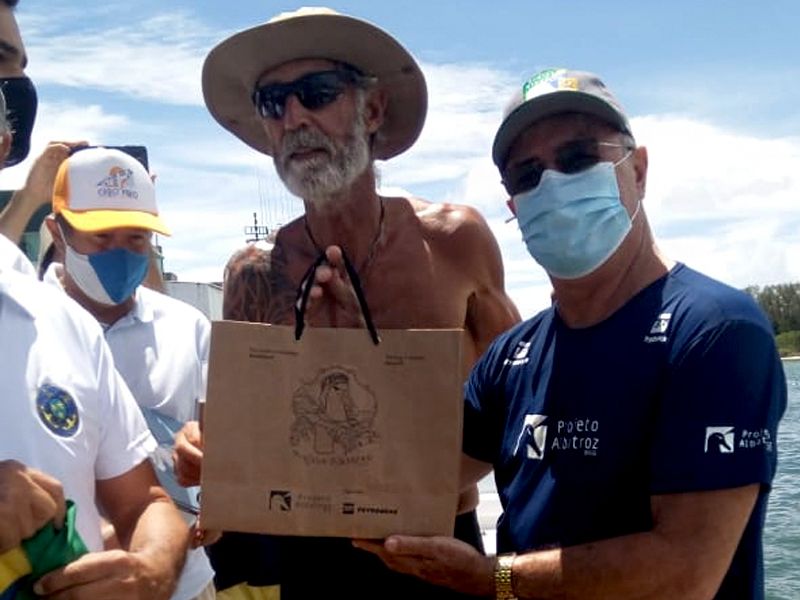Zirk Botha bate recorde mundial de travessia a remo e é recebido pelo Projeto Albatroz em Cabo Frio (RJ)