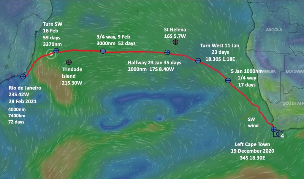 Apesar de ser uma distância facilmente percorrida pelos albatrozes no oceano, o trajeto é cheio de desafios para uma pessoa sozinha em um barco a remo. Para maior segurança, Botha adota a estratégia de manter seu barco 'Ratel' longe dos barcos de pesca, além de redobrar a atenção a outros navios, tradicionais na costa do Rio de Janeiro.