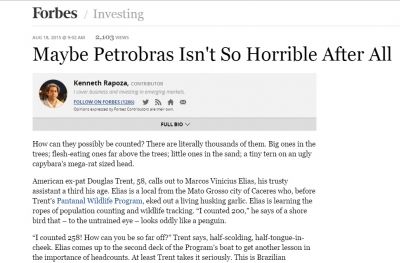 Recentemente publicada na revista Forbes, uma reportagem do jornalista Kenneth Rapoza analisa o papel da Petrobras pela conservação do meio ambiente. O texto des...